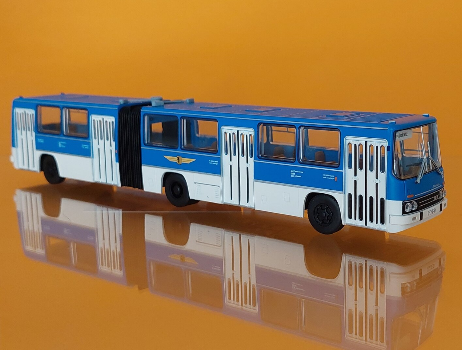 Sammlermodell aus hochwertigem Kunststoff. Aufwendig gefertigtes Modell mit vielen Details, extra angesetzten Teilen und einer Fahrzeug-Inneneinrichtung. Maßstäbliche Modelle dienen auch als Ausstattung für Modelleisenbahnanlagen.